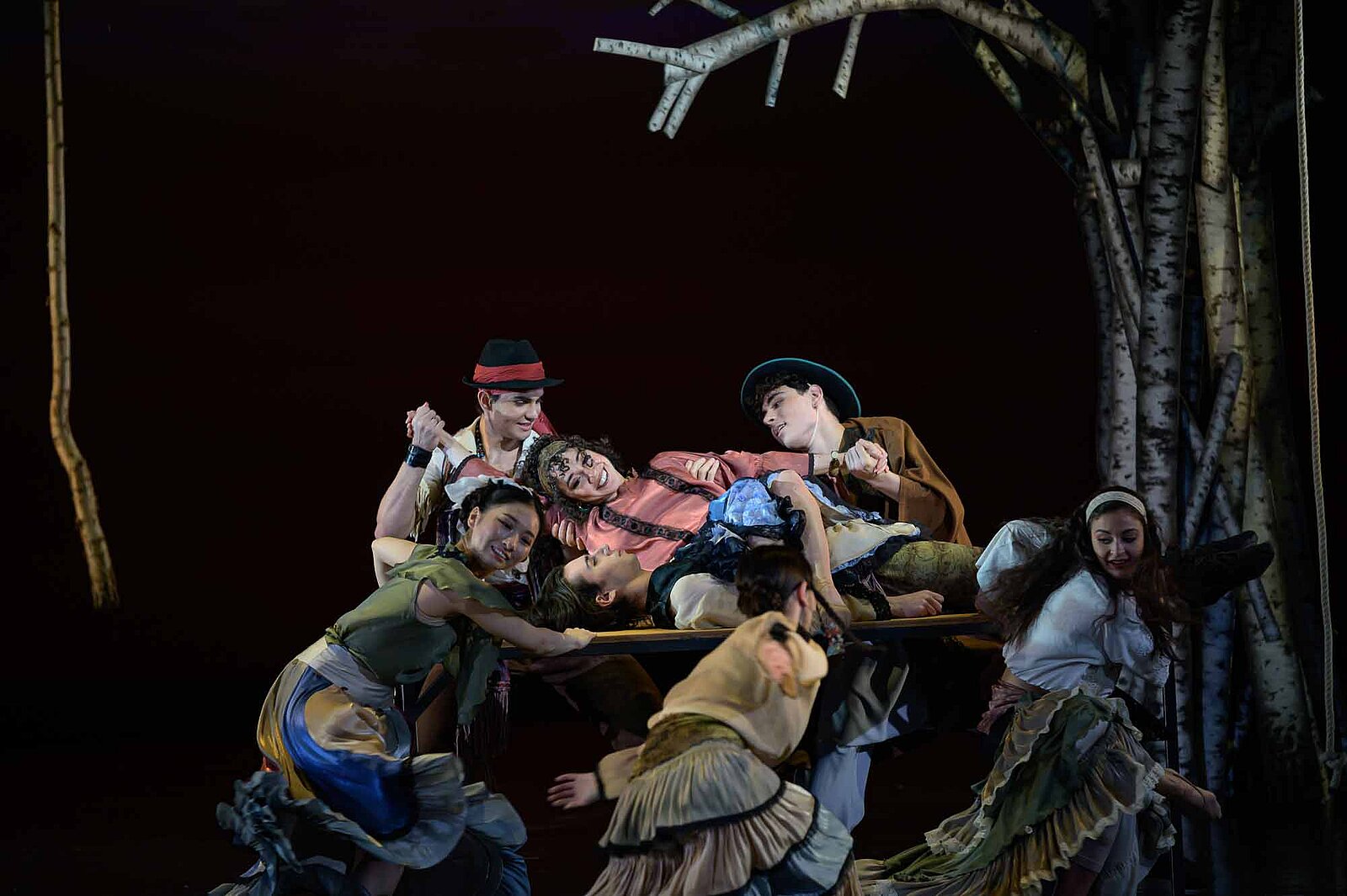 NC: In the first act we wanted to evoke the warmth and nostalgia of the past, like stepping back into your grandmother’s village and feeling the comforting embrace of the memories. We always aim to deeply connect with the set, letting it as well to shape the choreography. To capture this feeling, I thought about a big tree, about five meters tall - crafted from smaller pieces of birch wood, like a beautiful mosaic of Rachmaninoff’s memories. For the second act, we decided to leave the stage empty to allow for dynamic dance, but we played with lighting to create a festive, concert-like atmosphere.